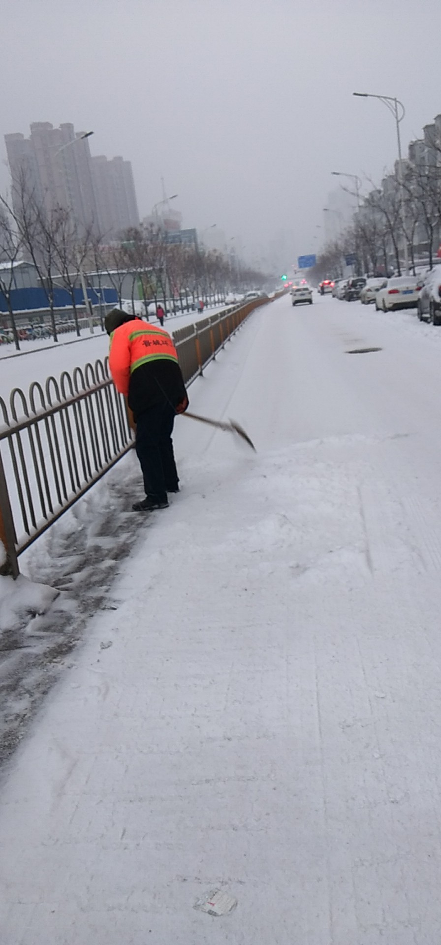 新年的第一場大雪,到處銀裝素裹,扮美了整個晉城,但大雪帶來美景的同時,也給大家的出行帶來了不便。為保障大雪期間出行安全,潔霸公司各保潔點的負責人積極組織員工進行主干道積雪清掃,在除雪過程中,雖然天氣寒冷,但大家除雪的熱情卻不減,大家有的撒融雪劑,有的 清掃積雪,有的用鏟子除冰,奏響鏟雪破冰進行曲。