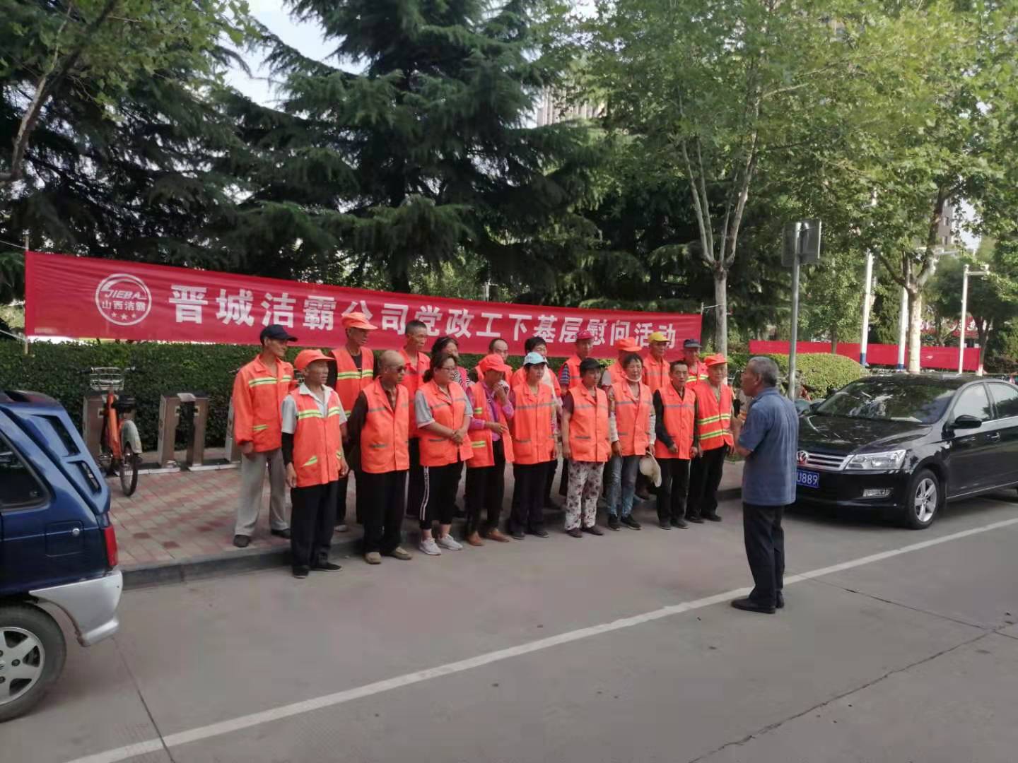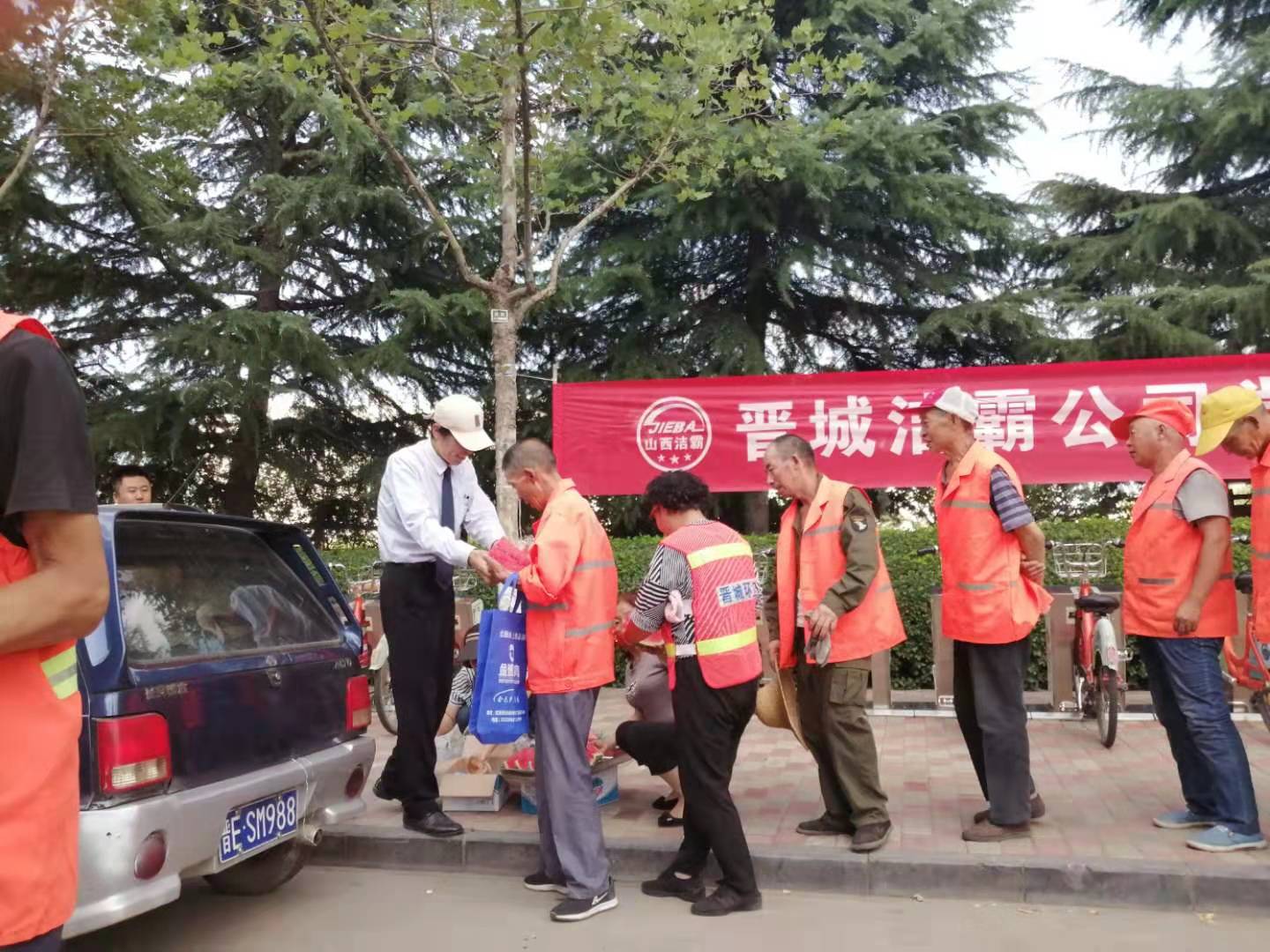 7月23日,是傳統(tǒng)的二十四節(jié)氣的大暑。下午,晉城潔霸公司黨政工慰問活動小組來到了暑期“情系一線”下基層慰問系列活動的第二站鳳西廣場,看望并慰問了辛勤奮戰(zhàn)在環(huán)衛(wèi)一線的員工,給他們送上清涼,送上關愛。
