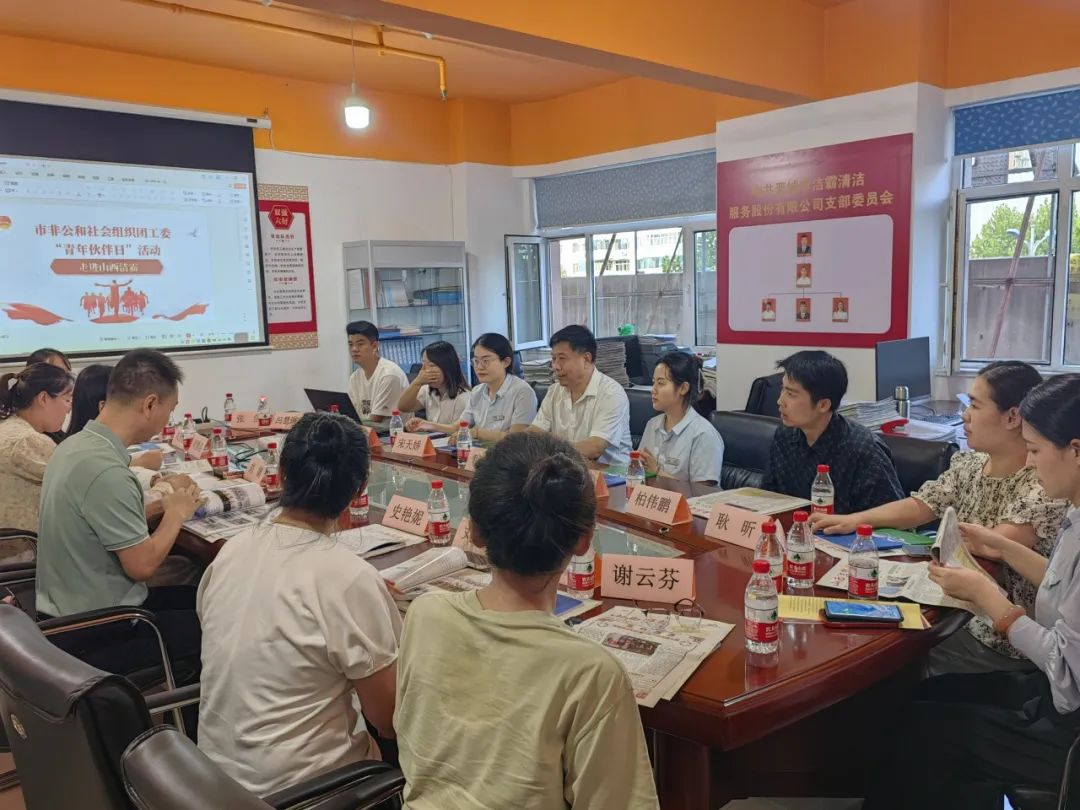 在城區(qū)零工市場(chǎng),負(fù)責(zé)人梁志恒向?qū)O晉波一行對(duì)零工市場(chǎng)作了簡(jiǎn)單介紹。參加活動(dòng)的團(tuán)員青年通過走訪觀看和傾聽講解,對(duì)零工市場(chǎng)有了一定的了解,并表示以后要加強(qiáng)合作,為企業(yè)招工薦才。 在潔霸公司,公司黨支部書記、總經(jīng)理程晉軍簡(jiǎn)單介紹了公司的發(fā)展歷程、主營(yíng)業(yè)務(wù),孫晉波一行一邊實(shí)地參觀,一邊聽取介紹,詳細(xì)了解了公司黨建引領(lǐng)的發(fā)展情況及黨建帶團(tuán)建工作。 在“關(guān)愛新工 從‘新’做起”主題座談會(huì)上,公司總經(jīng)理程晉軍致歡迎詞,向非公團(tuán)工委青年小伙伴們的到來表示熱烈歡迎,并就公司一直以來全力支持公司團(tuán)支部的工作,關(guān)心青年的發(fā)展,全方位為青年職工搭建成長(zhǎng)平臺(tái)的情況作了簡(jiǎn)略介紹。會(huì)上,大家暢所欲言,結(jié)合自身實(shí)際紛紛發(fā)表各自的見解和觀點(diǎn)并表達(dá)了參觀潔霸后的感受。 期間,參會(huì)團(tuán)員青年還集體學(xué)習(xí)了黨的二十屆三中全會(huì)精神、“兩企三新”和《團(tuán)章》部分內(nèi)容。 據(jù)悉,“青年伙伴日”活動(dòng)是團(tuán)市委、市非公和社會(huì)組織團(tuán)工委推出的一項(xiàng)品牌活動(dòng),旨在通過活動(dòng)開展,貫徹學(xué)習(xí)二十屆三中全會(huì)關(guān)于推進(jìn)青年工作的精神,加強(qiáng)對(duì)“兩企三新”青年的關(guān)心關(guān)愛,為全市非公青年提供學(xué)習(xí)交流的平臺(tái),進(jìn)一步發(fā)揮團(tuán)組織的凝心聚力作用。 |