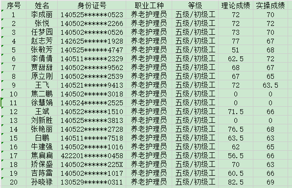 2024年8月25日第31批養(yǎng)老護理員初級認定人員成績公示