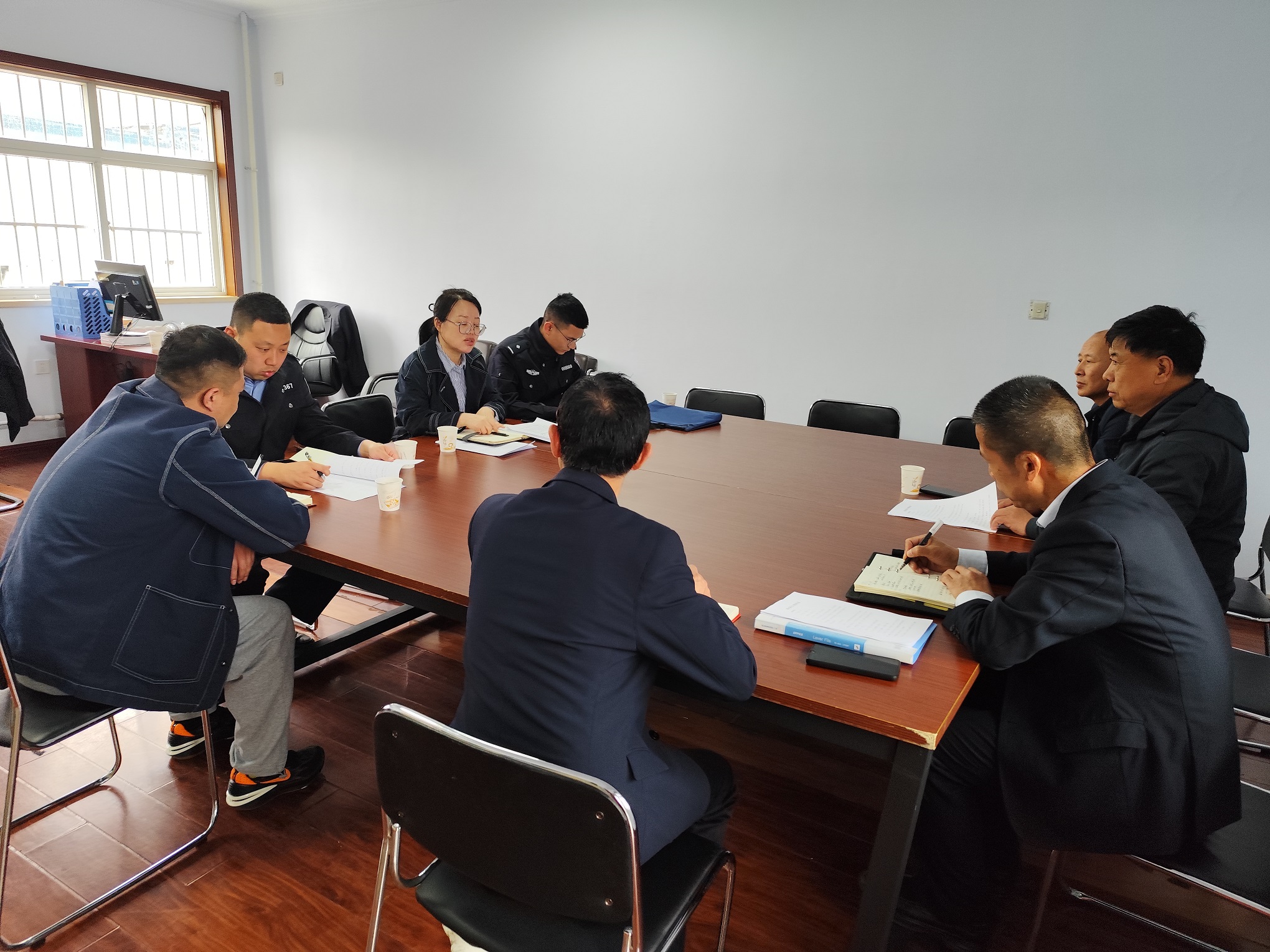 調(diào)研組一行聽取了保安公司經(jīng)理姜智海對(duì)保安公司基本情況、人員架構(gòu)、員工培訓(xùn)、服務(wù)點(diǎn)位、經(jīng)營(yíng)狀況、員工社保繳納情況以及警保聯(lián)勤聯(lián)動(dòng)情況等多個(gè)方面的詳細(xì)匯報(bào),對(duì)保安公司合規(guī)運(yùn)營(yíng)與重視員工權(quán)益保障給予了充分肯定。