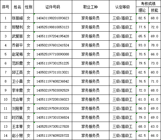 山西潔霸清潔服務(wù)集團股份有限公司職業(yè)技能等級認定中心現(xiàn)將2025年9月13日認定人員成績公示如下: