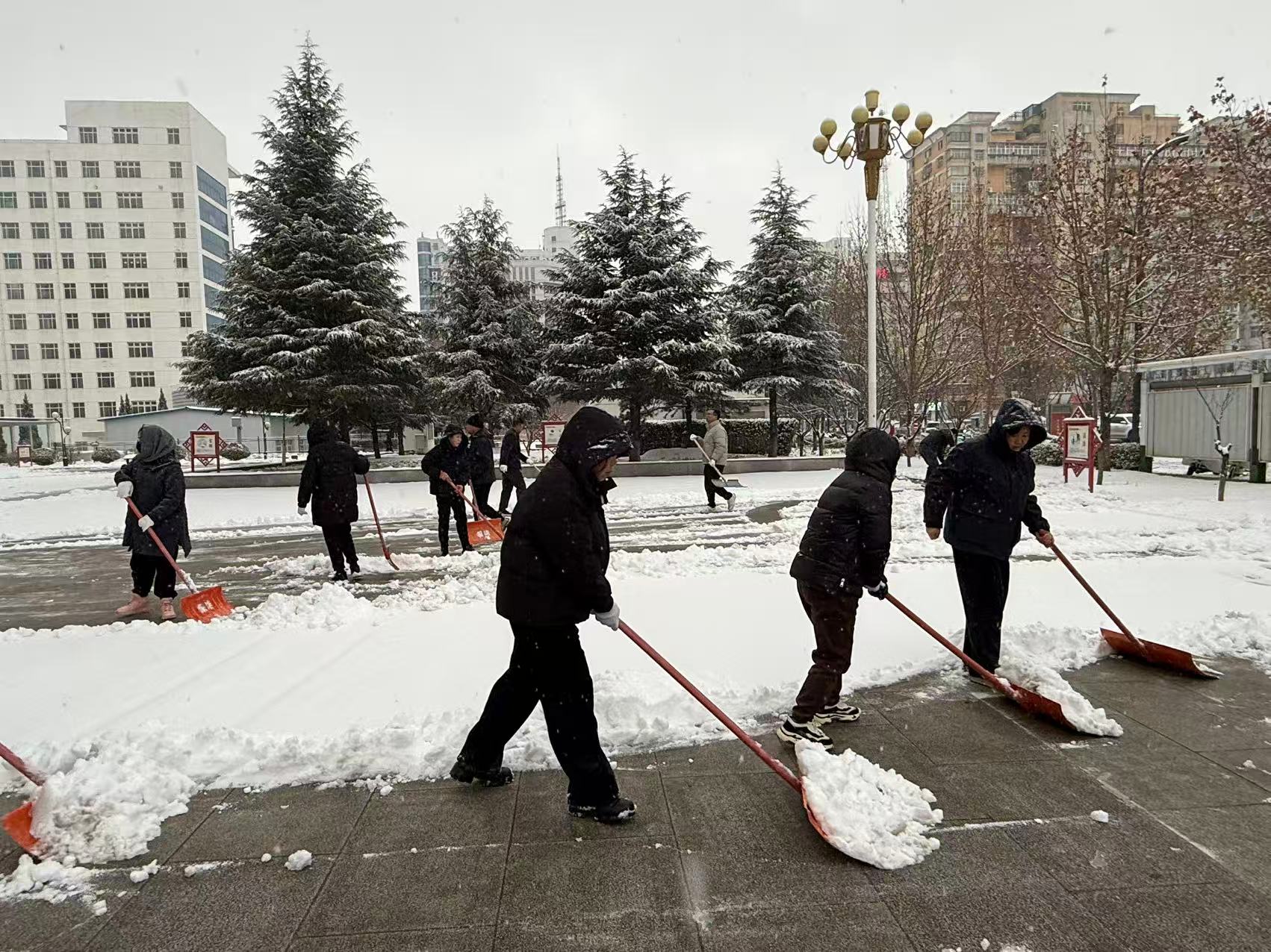 為確保道路暢通無(wú)阻,保障市民安全出行,集團(tuán)公司各基層單位服務(wù)點(diǎn)迅速響應(yīng),以雪為令、聞雪而動(dòng),在市政府、澤州縣政府、市醫(yī)院、市“三館”、富士康園區(qū)、陽(yáng)城北留鎮(zhèn)、蘭花城、花園水系公園、兩河公園及百潔物業(yè)各服務(wù)小區(qū)等區(qū)域,開(kāi)展清雪除冰專項(xiàng)行動(dòng)。現(xiàn)場(chǎng),除雪機(jī)械轟鳴作業(yè),干部職工手持鐵鍬、掃帚等工具,分工協(xié)作、默契配合,有的操作推雪機(jī)開(kāi)道,有的揮動(dòng)鐵鍬鏟除堅(jiān)冰,有的用掃帚清理余雪……寒風(fēng)凜冽中,處處可見(jiàn)熱火朝天的勞動(dòng)場(chǎng)景。