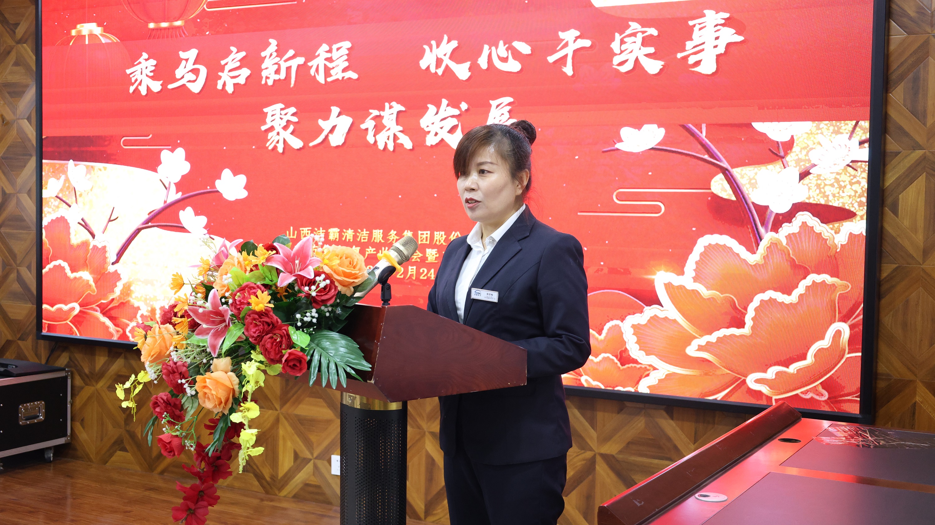 會(huì)議召開(kāi)前,山西潔霸物業(yè)、合眾力勞務(wù)派遣、辦公室、保潔部、百潔物業(yè)、潔霸超市、潔霸洗業(yè)、財(cái)務(wù)部、清洗一部、清洗二部、清洗三部、運(yùn)營(yíng)中心、職業(yè)培訓(xùn)學(xué)校、人力資源部、智能科技等子公司和部門(mén)分別登臺(tái)展示團(tuán)隊(duì)士氣和精神風(fēng)貌,集中展現(xiàn)2026年的奮斗目標(biāo)和決心,凝聚團(tuán)隊(duì)向心力。